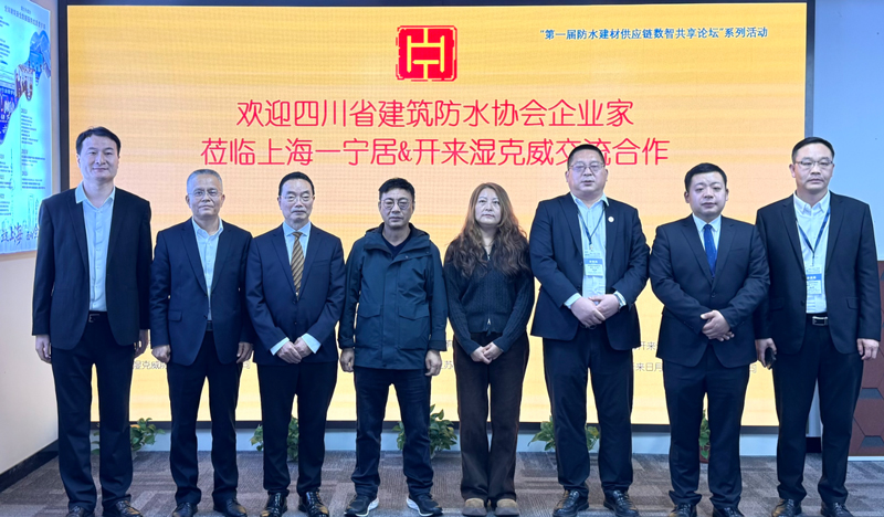 2025年11月6日,中國防水展在上海舉辦期間,由中國建筑防水協(xié)會與上海一寧居信息科技有限公司聯(lián)合主辦的“第一屆防水建材供應(yīng)鏈數(shù)智共享論壇”圓滿落幕。論壇結(jié)束后,四川省建筑防水協(xié)會會長趙華堂帶領(lǐng)四川防水行業(yè)企業(yè)家代表到訪上海一寧居&開來濕克威,開展深度交流與實地考察。中國建筑業(yè)協(xié)會建筑防水分會副會長、一寧居創(chuàng)始人倪貴全高工,上海開來濕克威&一寧居供應(yīng)鏈CEO倪俊攜核心管理團隊全程熱