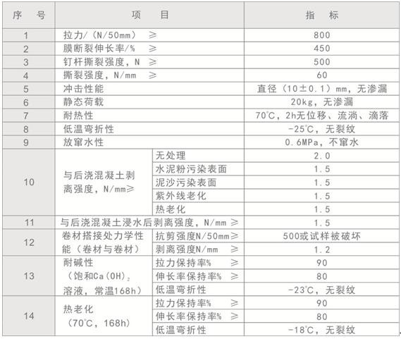 澆筑混凝土時的水泥漿與卷材粘結層特殊的高分子聚合物濕固化反應粘結。粘結強度隨混凝土抗壓強度增加而增加,混凝土達到初凝期卷材的粘結層已與混凝土面層完全濕固化的反應溶合成一個新的防水層。