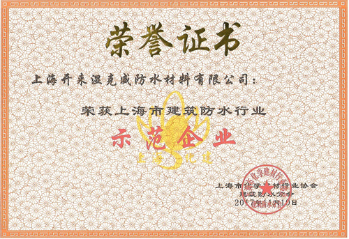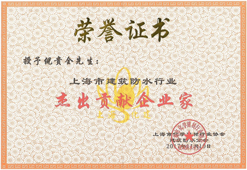 2017年11月11日,“上海市化學建材行業(yè)協(xié)會建筑防水分會”在上海召開,本次會上,上海開來濕克威防水材料有限公司榮獲上海市建筑防水行業(yè)示范企業(yè);上海開來濕克威防水材料有限公司董事長、中國建筑防水協(xié)會常務理事、上?;瘜W建材協(xié)會防水分會副會長、河南省防水協(xié)會執(zhí)行會長倪貴全榮獲“上海市建筑防水行業(yè)杰出貢獻企業(yè)家”。
