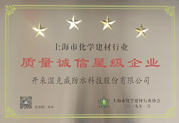 上海市化學(xué)建材行業(yè)協(xié)會(huì)第七屆第三次會(huì)員代表大會(huì)于2019 年2月 28 日 召開,備受業(yè)界矚目的“上海市化學(xué)建材行業(yè)質(zhì)量誠信星級(jí)企業(yè)”名單如期揭曉。開來濕克威防水科技股份有限公司榮獲“質(zhì)量誠信四星級(jí)企業(yè)”稱號(hào)。