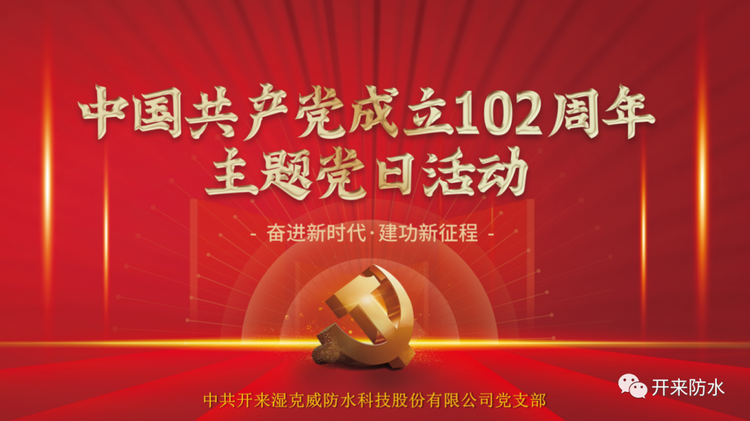 為慶祝中國共產(chǎn)黨成立102周年,引導黨員干部不斷提高理論素養(yǎng)、堅定理想信念、增強能力本領,更加深刻領悟“兩個確立”的決定性意義,增強“四個意識”、堅定“四個自信”、做到“兩個維護”。2023年6月30日,中共開來濕克威防水科技股份有限公司黨支部組織開展了“學思踐悟、再建新功”的主題黨日活動。